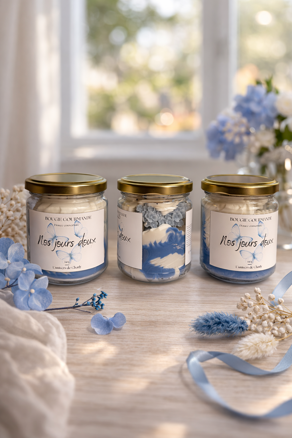 Chaque bougie est artisanale et unique – de légères variations sont possibles (photos non contractuelles).
